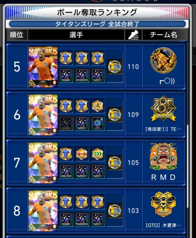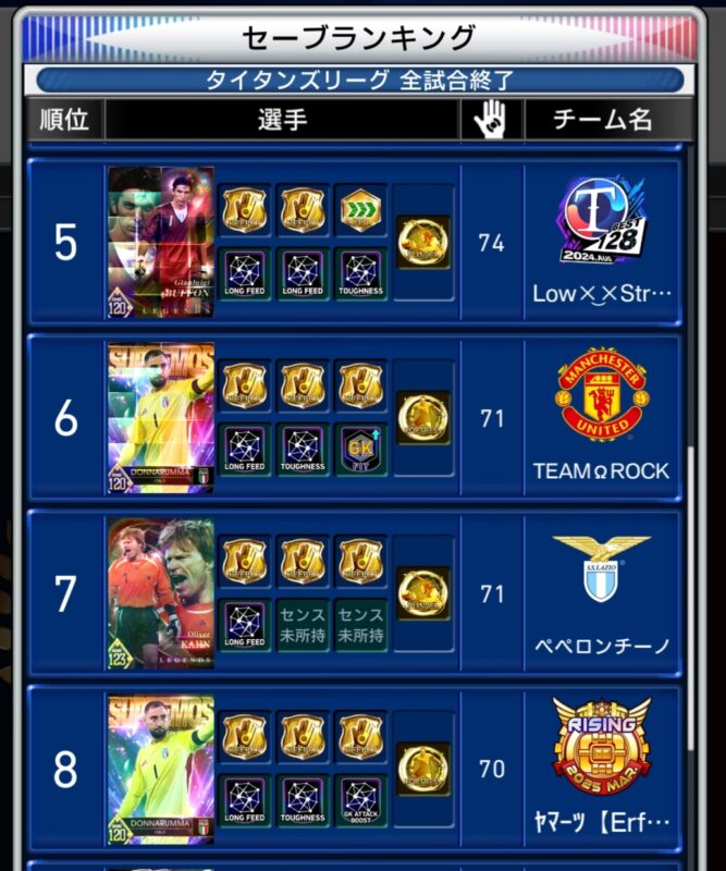 1~8位の全てがレジェンドブッフォンでした。(ちなみに10位まで全てブッフォンで埋め尽くされている状況です。。。)