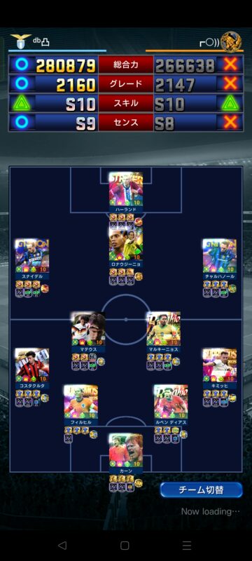 ボランチ2人、DFの全員がキラかつ自前顔面を有しており、特にボランチ2枚はボランチFITもちとかなりの強化されたチームでした。