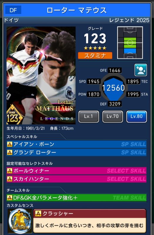※追記 2024年10月に登場したロナウジーニョ以降は通常カード同様に「限界突破してMAX80レベル」と仕様変更になりました