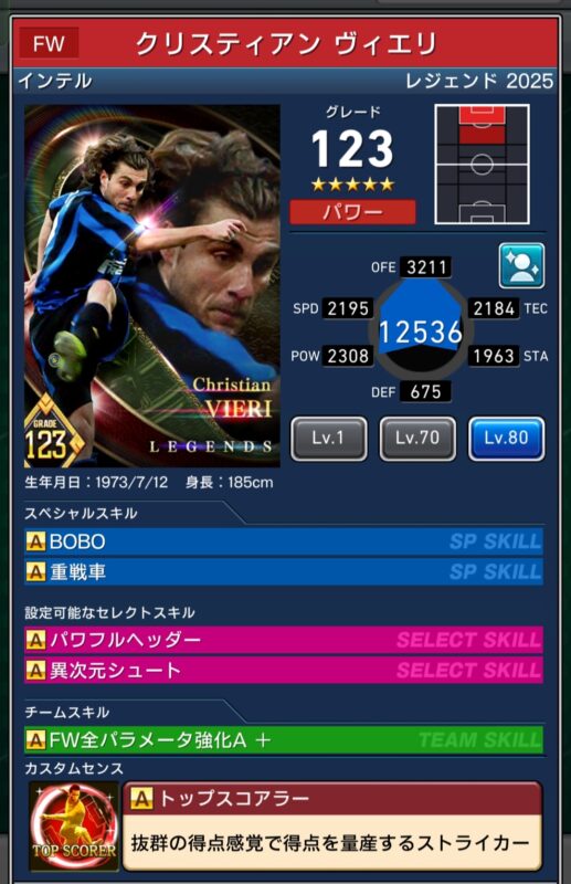 ロニー、マテウス、ベッカムが当たり選手のスリートップで、次点でブッフォンがレジェンド環境になります(2025.5.1現在)