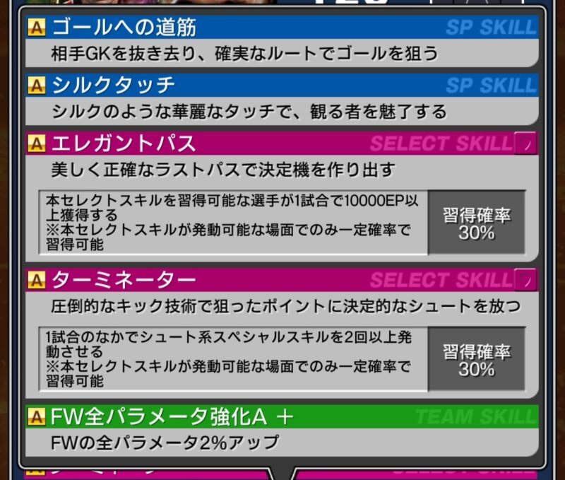 Lv1:EP50%、ドリブルスキル強化A