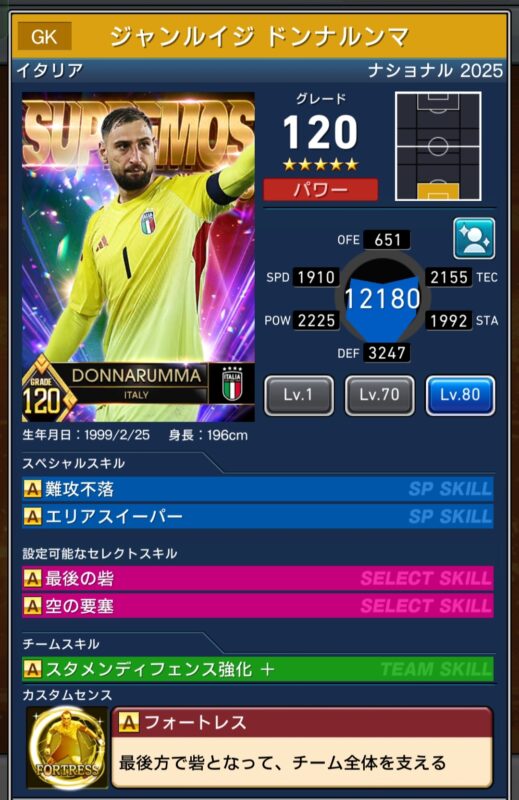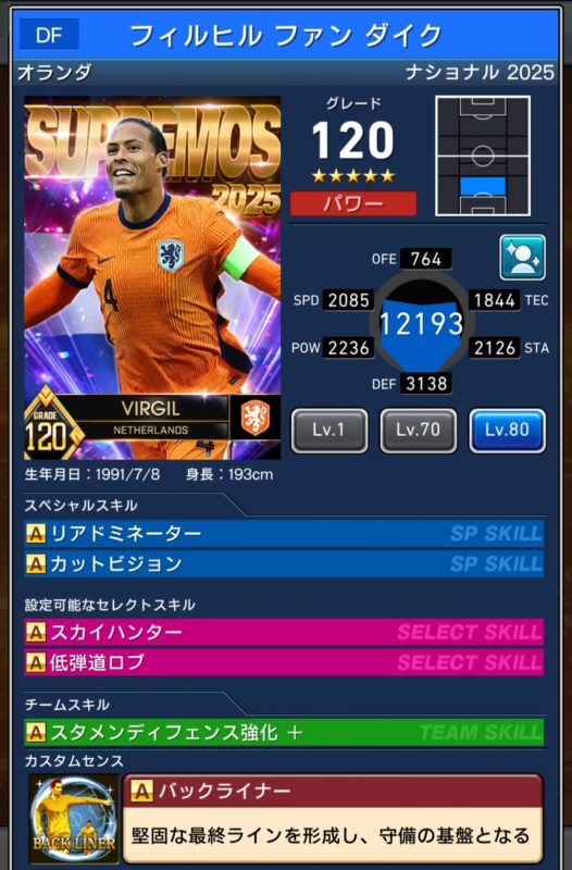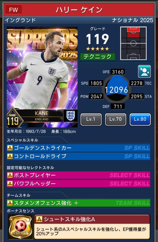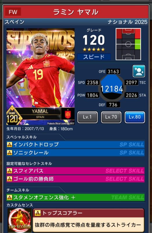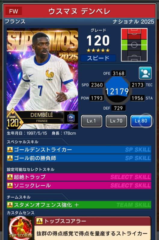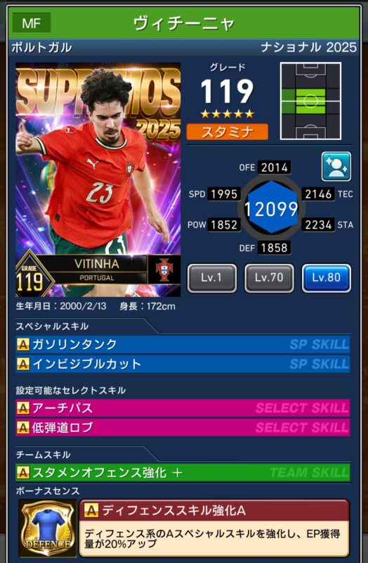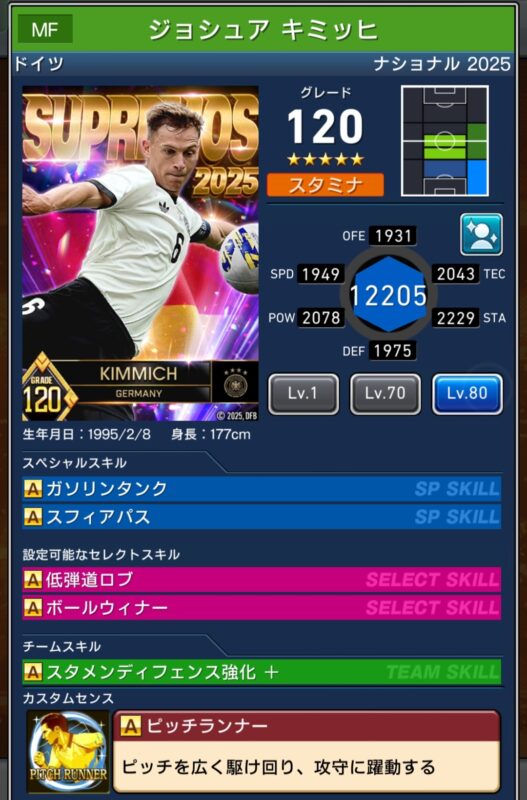 今回はカスタムセンスをもつ選手が5選手、計7選手がセレクトスキルもちです。
