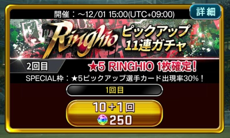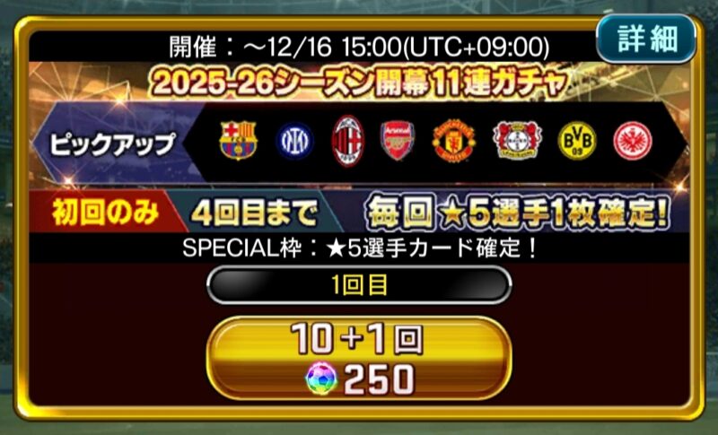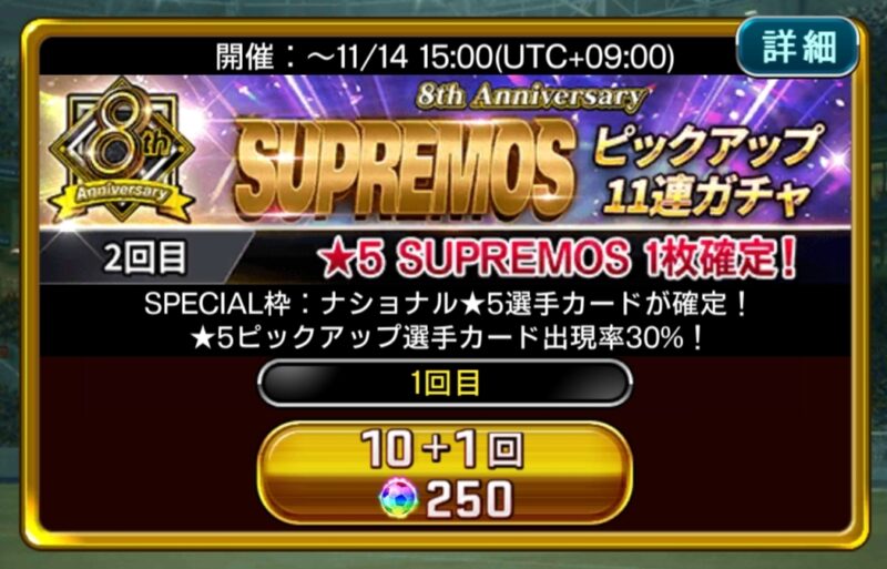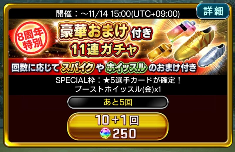 キャプテン翼コラボ記念ピックップ11連ガチャ