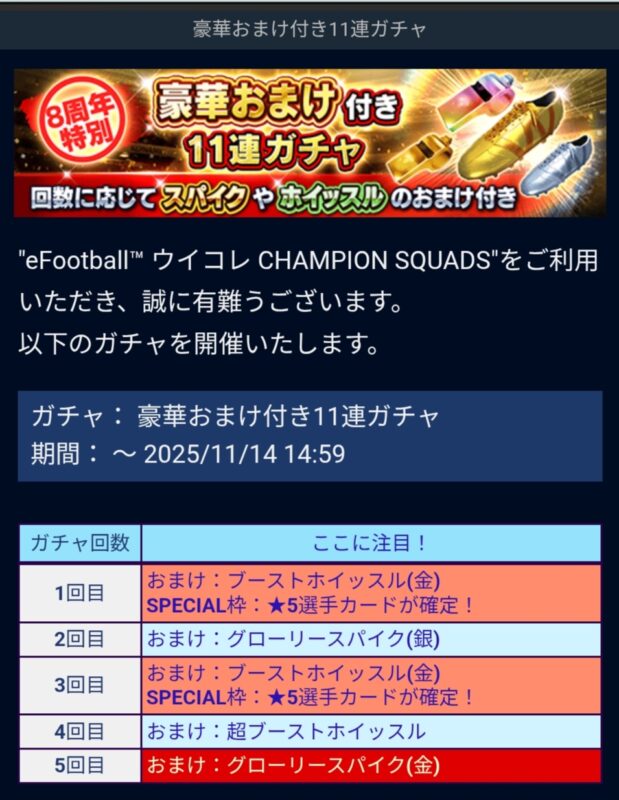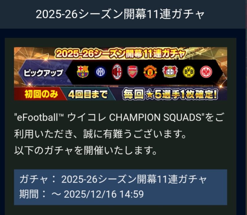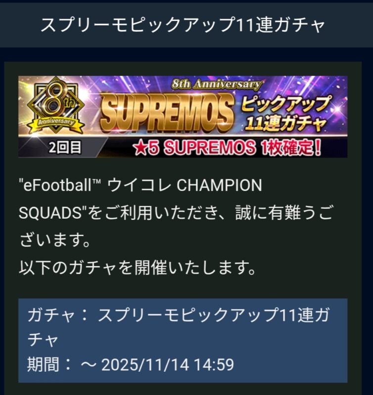 eFootball Series 30th Anniversary記念 ピックアップ11連ガチャ