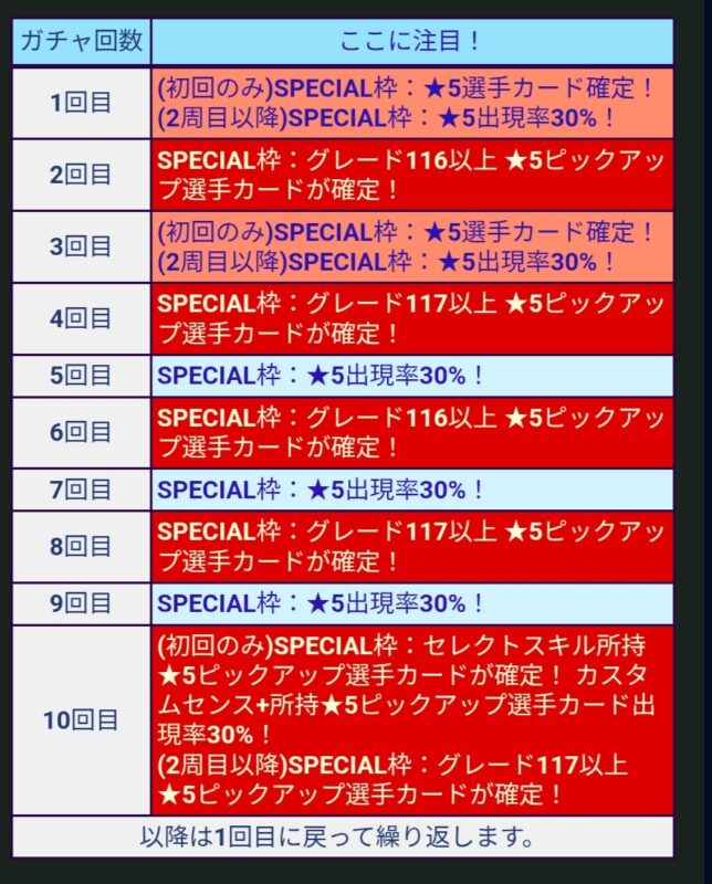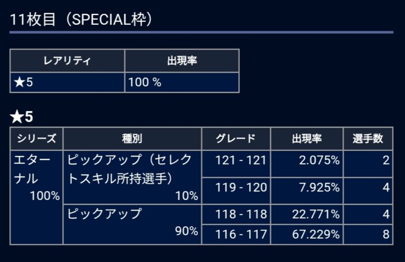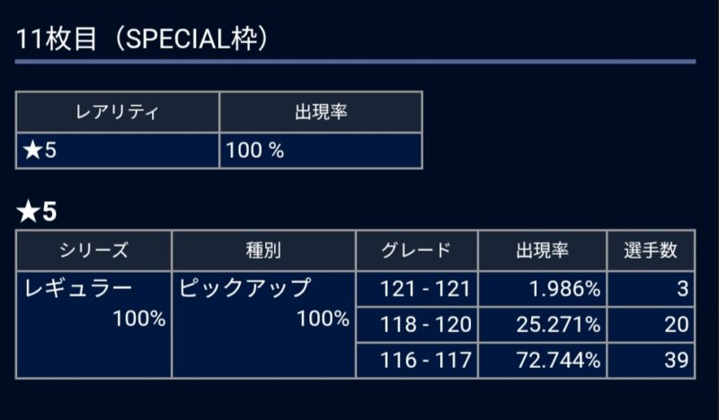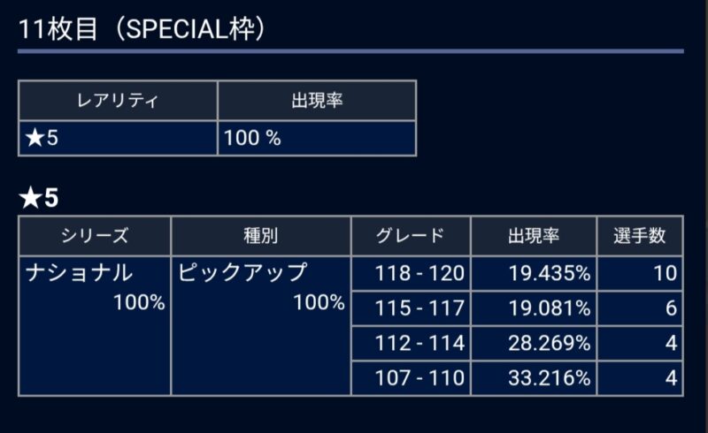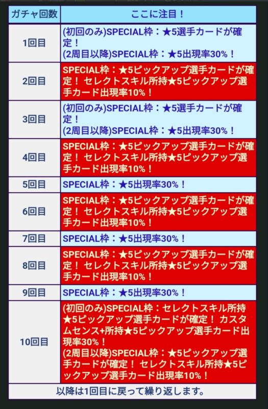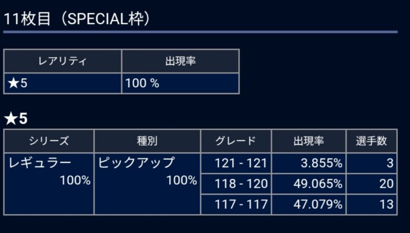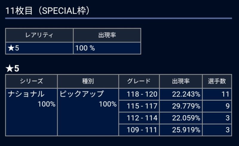 また、本ガチャで排出される5選手は初めからアドセンが一つついています。