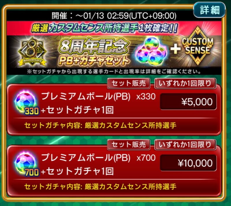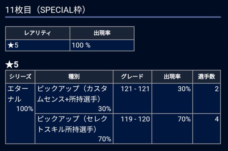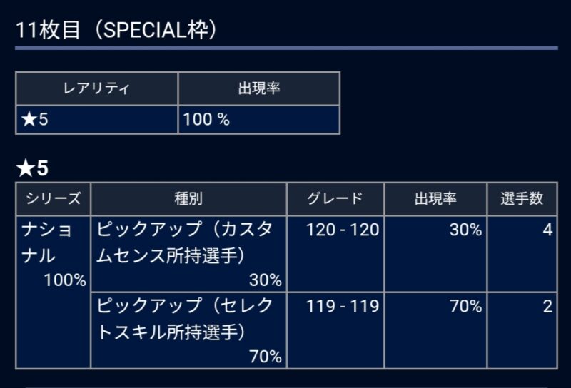 また、本ガチャで排出される★5の選手は最初からフュージョン+1され、下記限定センスを有しています