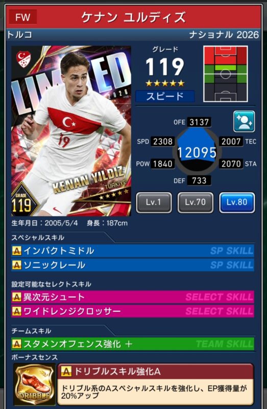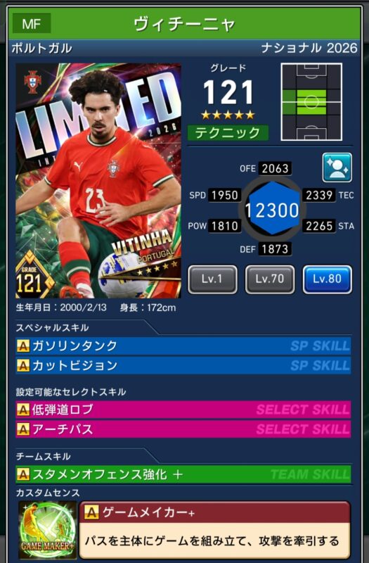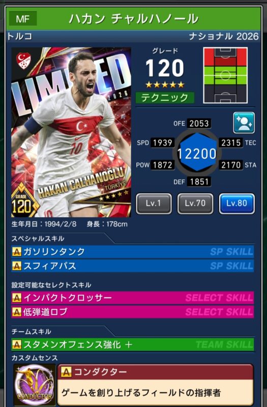 カスタム+選手が2名、カスタム選手が2選手、計6選手がセレクトスキルもちです。