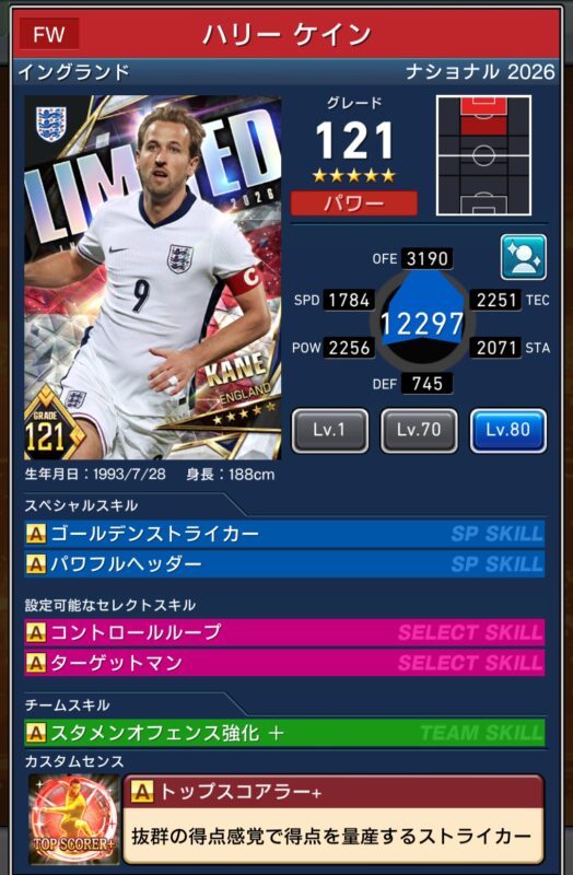 カスタムスキル:トップスコアラー+