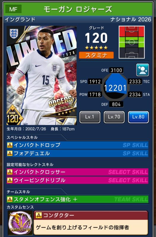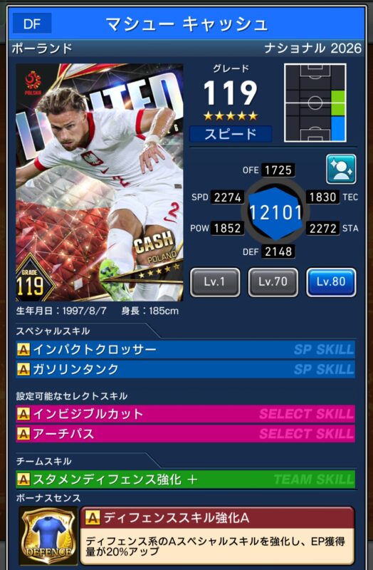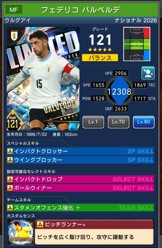 カスタム+選手が2名、カスタム選手が2選手、計6選手がセレクトスキルもちです。