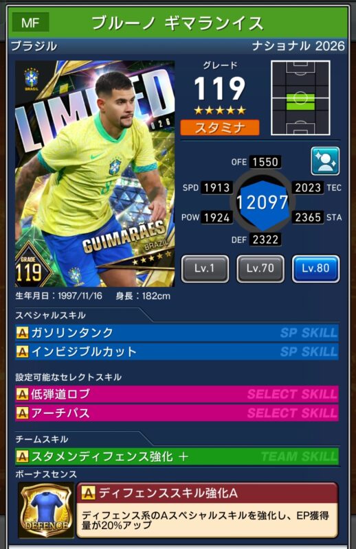 カスタム+選手が2名、カスタム選手が2選手、計6選手がセレクトスキルもちです。