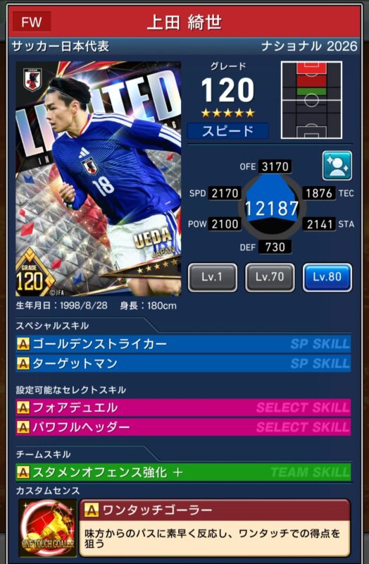 セレクトスキル①:ゴールデンストライカー
